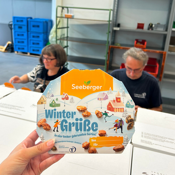 Die Werkgemeinschaft Bad Buchau ist eine anerkannte Werkstatt für Menschen mit körperlichen und geistigen Einschränkungen. Neben Holzverarbeitung, Montage oder Kabelkonfektionierung spielt auch der Bereich Verpackung eine wichtige Rolle. Für unsere Winterboxen übernehmen die Mitarbeitenden der Werkgemeinschaft alle Schritte der Konfektionierung – vom Falten der Schachteln über das Befüllen mit Kleinpackungen bis hin zum Verschließen, Etikettieren, Verpacken und Palettieren.