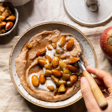 Tämä talvinen mannapuuro sopii täydellisesti kylmiin päiviin: kermainen, mausteinen ja herkullisella karamellisoidulla omenalla ja mantelilla täytetty. Nopea valmistaa ja yksinkertaisesti herkullinen!